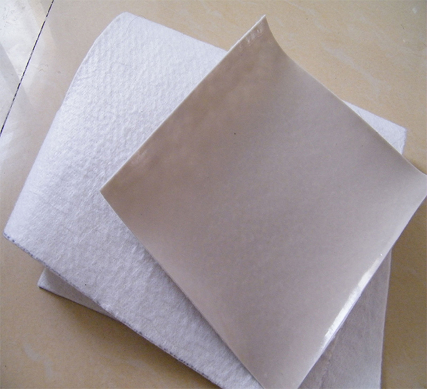 復(fù)合土工膜是在薄膜的一側(cè)或兩側(cè)貼上土工布,形成復(fù)合土工膜。其形式有一布一膜、二布一膜、兩膜一布等。