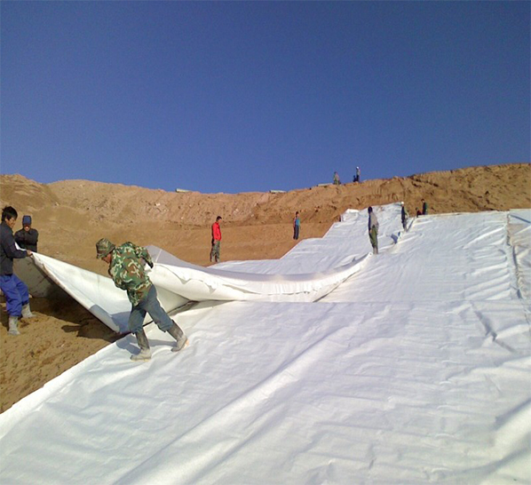 土工布作為土工膜的保護(hù)層,使保護(hù)防滲層不受損壞。為減少紫外線照射,增加抗老化性能,最好采用埋入法鋪設(shè)。