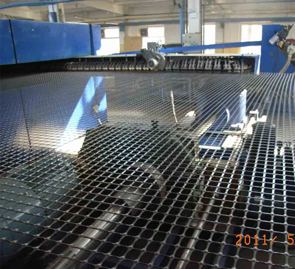 雙向拉伸塑料土工格柵是以聚丙烯(PP)或聚乙烯(PE)為原料,經(jīng)塑化擠出板材、沖孔、加熱、縱向拉伸、橫向拉伸而成。該材料在縱向和橫向上都具有很大的拉伸強(qiáng)度,這種結(jié)構(gòu)在土壤中能夠提供一個(gè)更為有效的力的承擔(dān)和擴(kuò)散的理想連鎖系統(tǒng),適應(yīng)于大面積承載的地基補(bǔ)強(qiáng)。