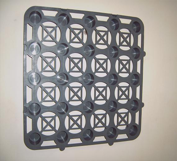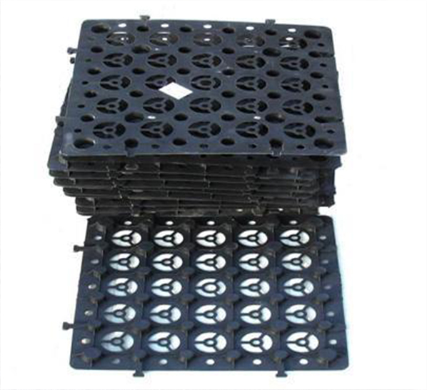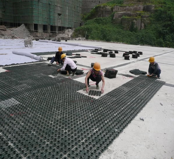 蓄排水板的安裝施工根據(jù)設(shè)計圖要求鋪設(shè),板材采用扣合的搭接方式。