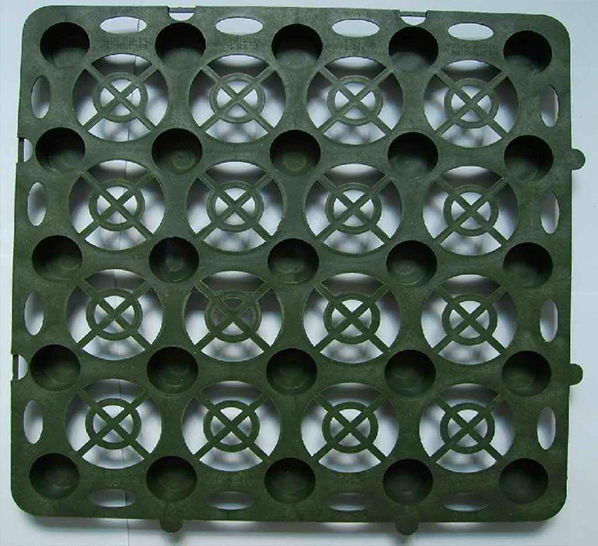 該種板材自身就具有蓄水、排水兩種綜合功能,板材具有空間剛度極高的特點,抗壓性明顯優(yōu)于同類產(chǎn)品(可以通過現(xiàn)場試驗檢驗),能夠承受400Kpa以上的高抗壓負(fù)荷,同時可以承受在種植頂板回填土過程中機(jī)械碾壓的極端負(fù)荷情況。
