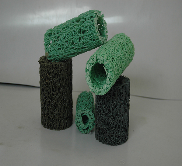 塑料盲溝是由塑料芯體外包裹濾布組式。塑料芯體是以熱可塑性合成樹脂為主要原料,經(jīng)過改性,在熱熔狀態(tài)下,通過噴咀擠壓出細的塑料絲條,再通過成型裝置將擠出的塑料絲在結(jié)點上熔接,形成三維立體網(wǎng)狀結(jié)構(gòu)。塑料芯體有矩形、中空矩陣、圓形中空圓形等多種結(jié)構(gòu)形式。該材料克服了傳統(tǒng)盲溝的缺點,具有表面開孔率高,集水性好,空隙率大,排水性好,抗壓性強,耐壓性好,柔性好,適應(yīng)土體變形,耐久性好,重量輕,施工方便,工人勞動強度大大下降,施工效率高,因而受到工程局的普遍歡迎,并得到廣泛的應(yīng)用。
