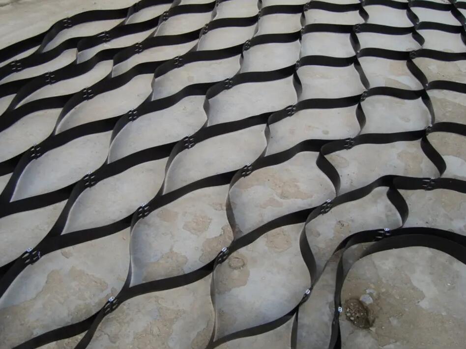 土工格室是由高強度的HDPE或PP共聚料寬帶,經(jīng)過強力焊接或鉚接而形成的一片網(wǎng)狀格室結(jié)構(gòu)。它伸縮自如,運輸時可縮疊起來,使用時張開并又充填土石或混凝土料,構(gòu)成具有強大側(cè)向限制和大剛度的結(jié)構(gòu)體。它可用來做為墊層,處理軟弱地基增大地基的承載能力,也可鋪設(shè)在坡面上構(gòu)成坡面防護結(jié)構(gòu),還可以用來建造支擋結(jié)構(gòu)等。