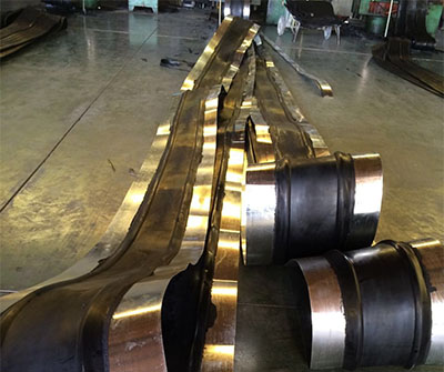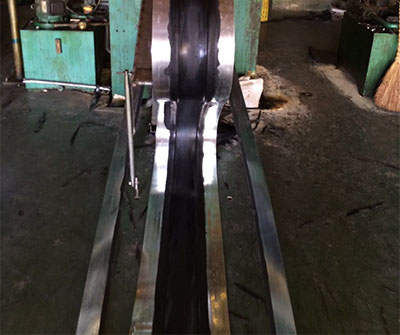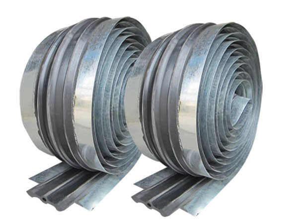 三、工藝流程:我們可以先將經(jīng)過先期處置的鍍鋅鋼帶拔出橡膠兩頭硫化成形,兩者之間的粘結(jié)力的結(jié)實(shí)性,具有分明防滲止水方面的效果。鋼邊止水帶的兩頭橡膠體在構(gòu)造變形時被緊縮、拉伸、變形,而起到密封止水作用;鍍鋅鋼帶與混凝土有著良好的粘附性,不易零落和松動,使止水帶能接受較大的拉力和扭力。在施工中由于混凝土澆筑時的宏大振動力和不易固定,會使普通橡膠止水帶發(fā)生移位、扯離、改變而呈現(xiàn)松動和零落,致使在水壓較大的狀況下會發(fā)生滲漏景象,而采用鋼邊橡膠止水帶時,由于鋼帶與混凝土、鋼帶與橡膠之間不會發(fā)生新的滲漏縫。